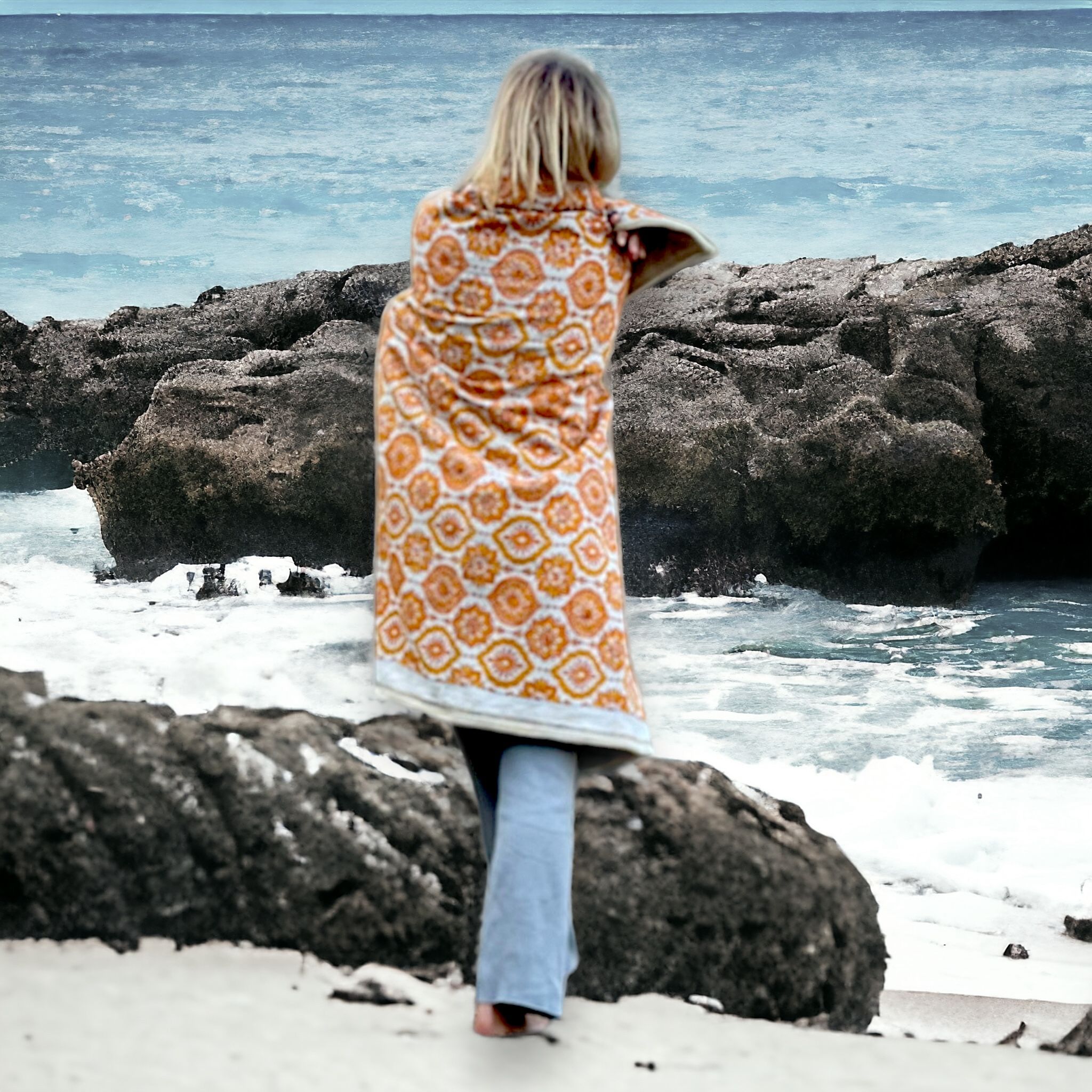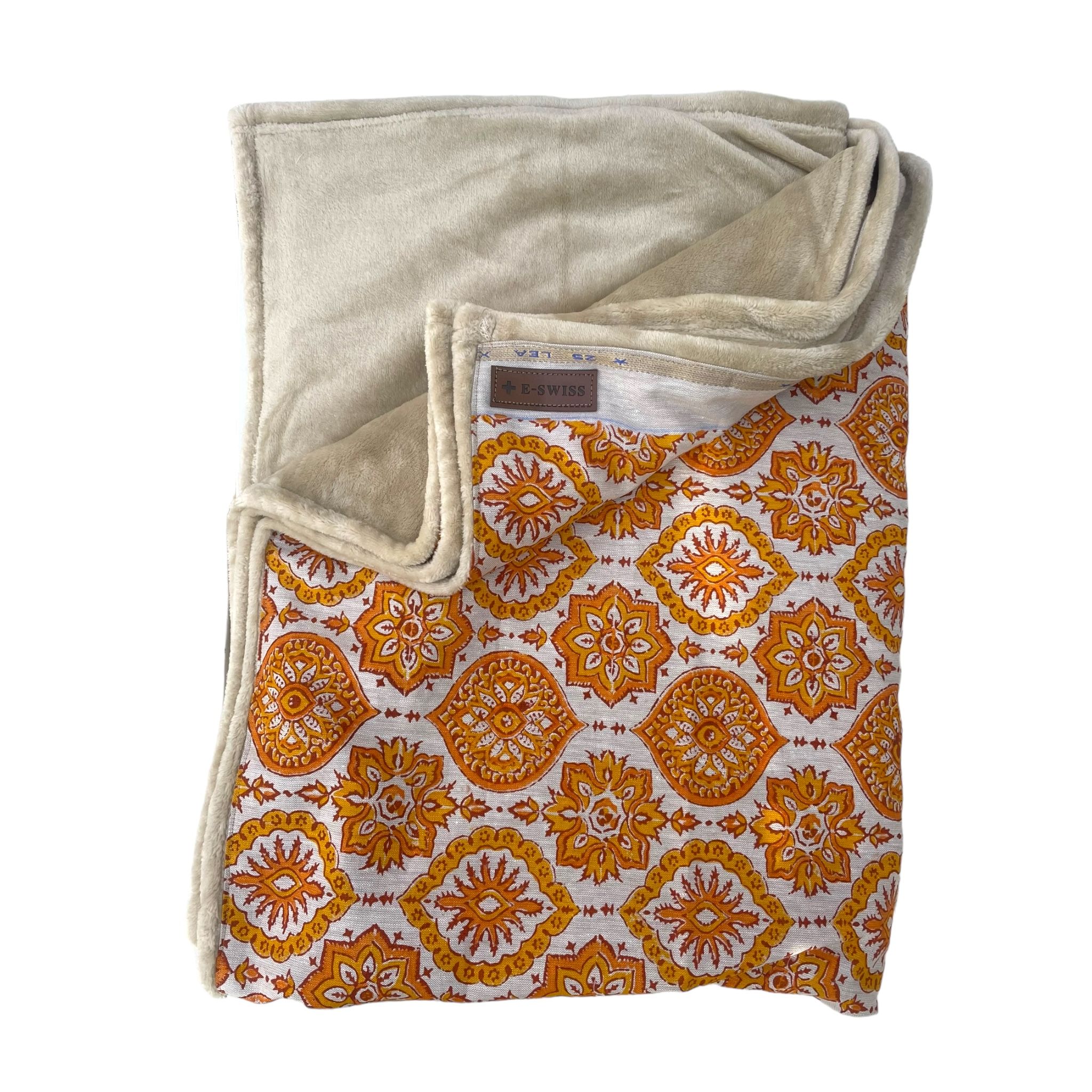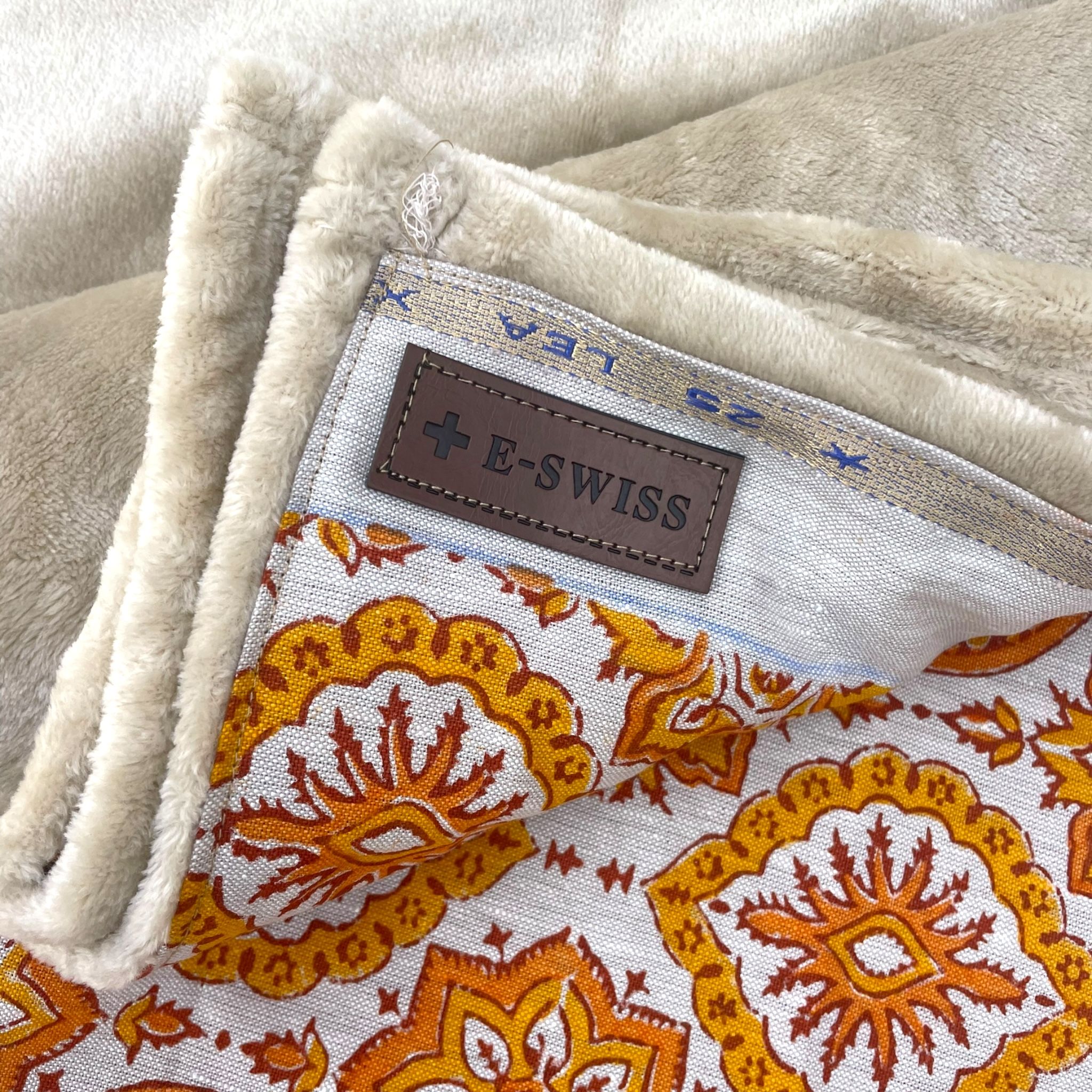 Suave manta de Lino europeo de altisima calidad tintado a mano por el tradicional sistema de Block Print 100% ARTESANAL, y el reverso de suavísima manta coral fleece. Un lujo de manta con la que podras sentir la ligereza, suavidad y belleza de sus diseños Usala en tu sofa, cama, cuna de bebe, yoga, meditacion… para llevartela a cualquier sitio dando un toque de color y elegancia. Amamos el trabajo artesanal hecho con Amor. Una pieza que es una pequeña joya para disfrutar.