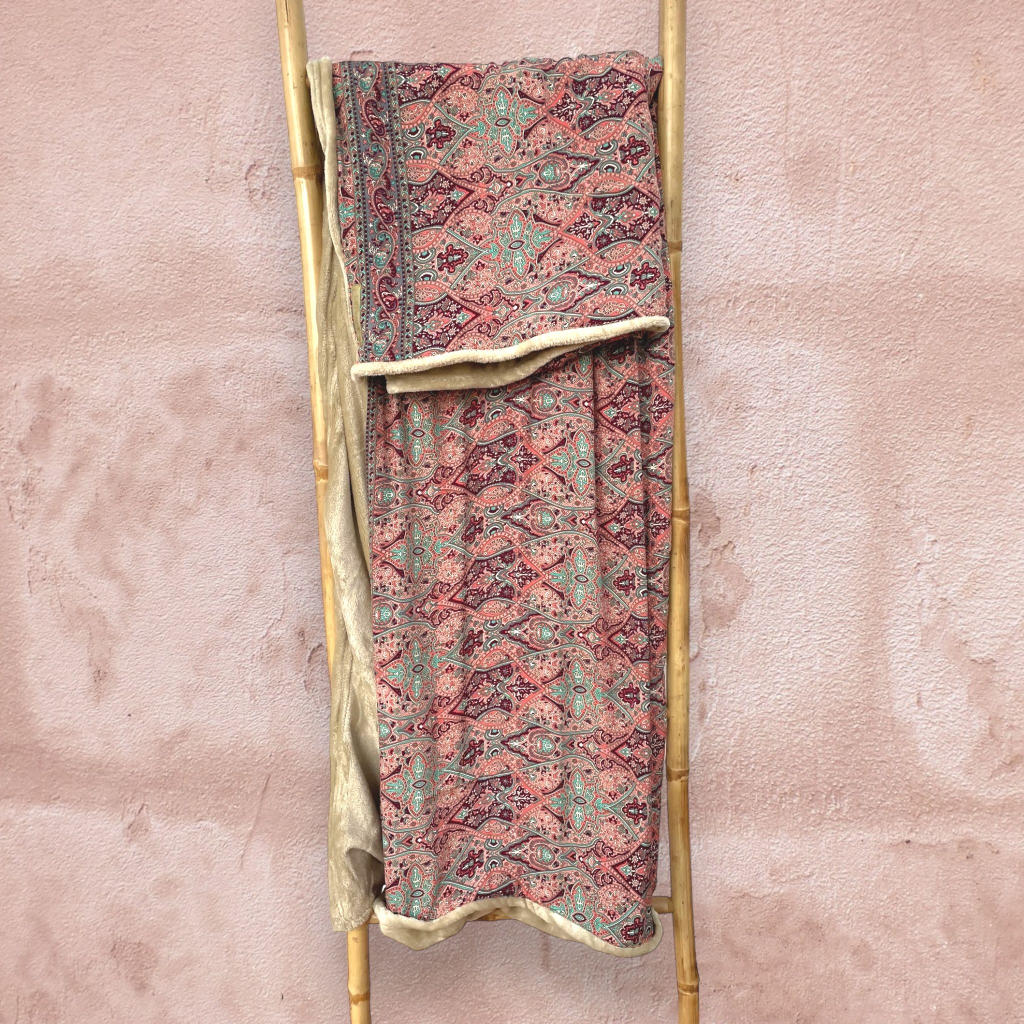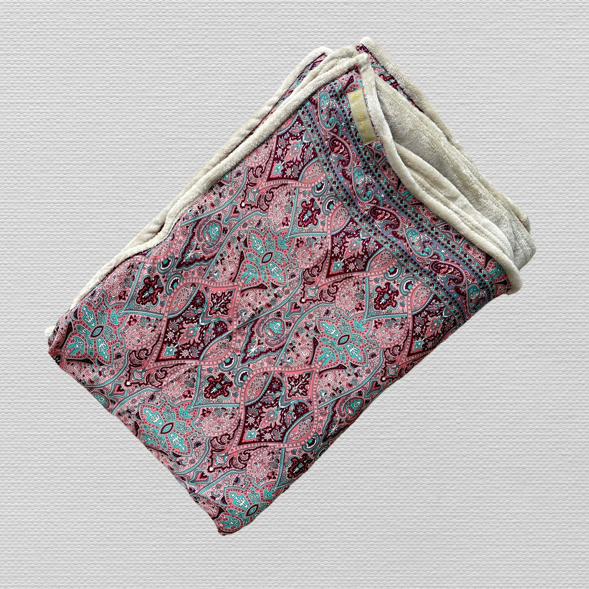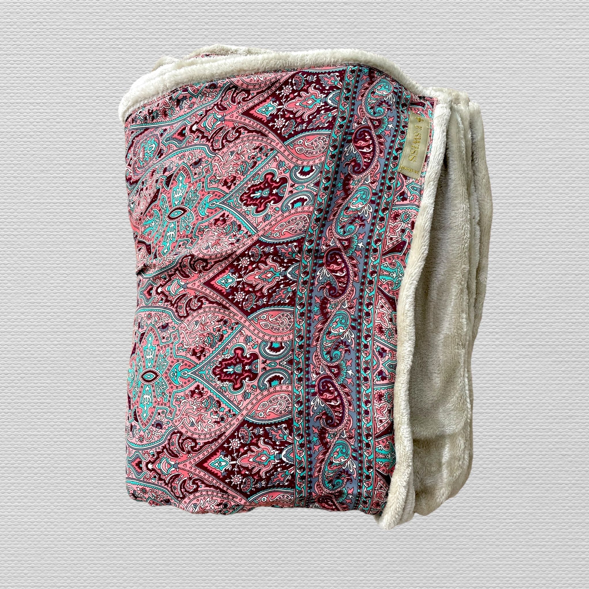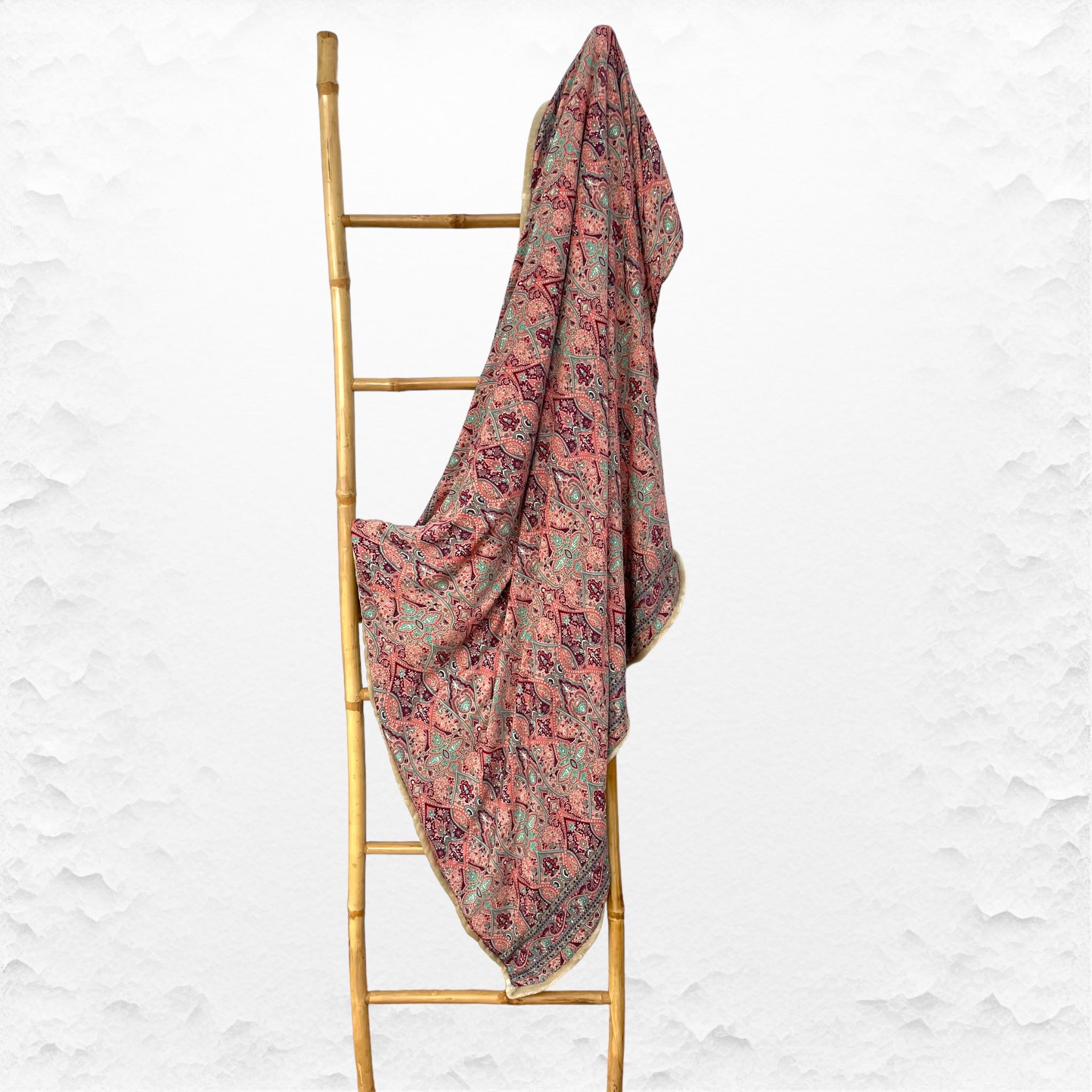 Manta con dos caras, por un lado una manta ultrasuave de tacto de visón y por el otro lado, preciosa tela de Seda de Saree. Manta de sofá 175 x 120 cm.